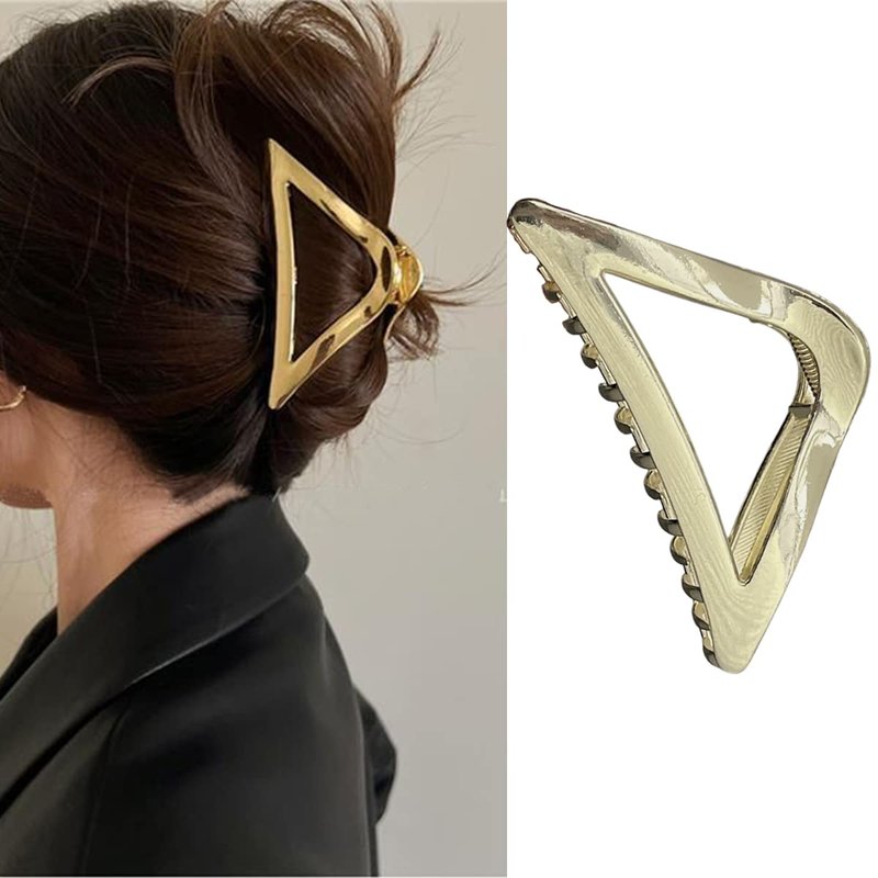 Triangle Hair Claw Clip Hollow Triangle Hair Clips Medium Metal Hair Claw for Women Girls Non-Slip Strong Grab Clips Shark Barrette Hair Clamps Hair Accessories for Thick Hair(Gold)