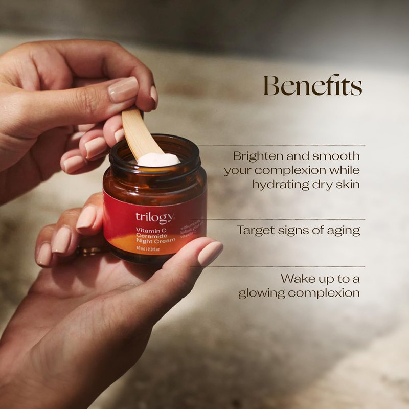 Trilogy Vitamin C Ceramide Night Cream - Hydrate and Brighten Dull Skin, 2 Fl Oz.
