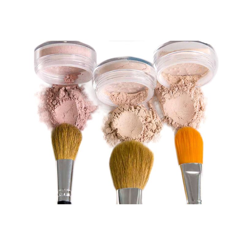 TRIO WITH BRUSHES (BEIGE) Full Size Kit Mineral Makeup Brush Set Foundation Concealer Blush Bare Face Sheer Powder Cover