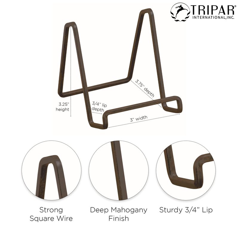 Tripar Square Metal Wire Stand, Mahogany Finish (3-Inch Depth) Tabletop Easel Sleek & Modern Look - Perfect for Books, Plates, Photos & More
