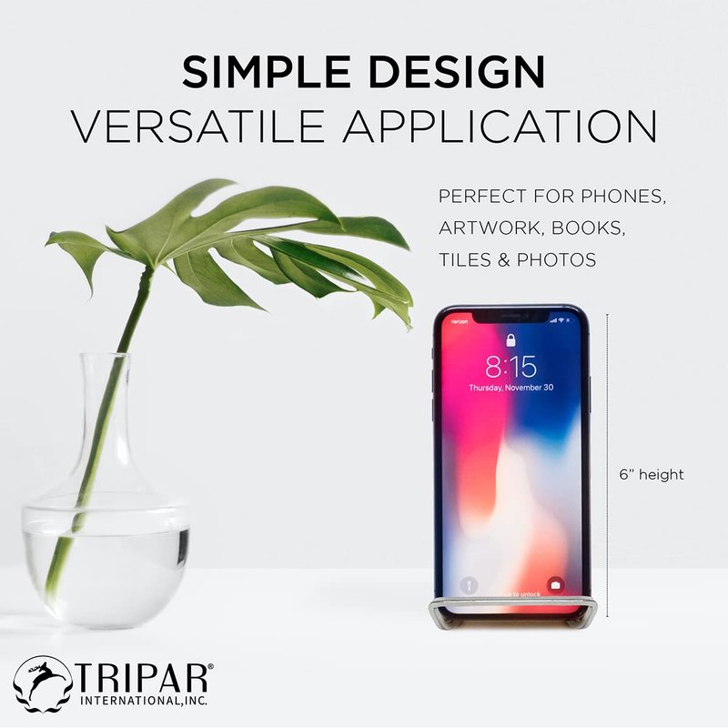 Tripar Square Metal Wire Stand, Silver Finish (4-Inch Depth) Tabletop Easel Display Handcrafted Edge Design Sleek & Modern Look - Perfect for Books, Plates, Photos & More
