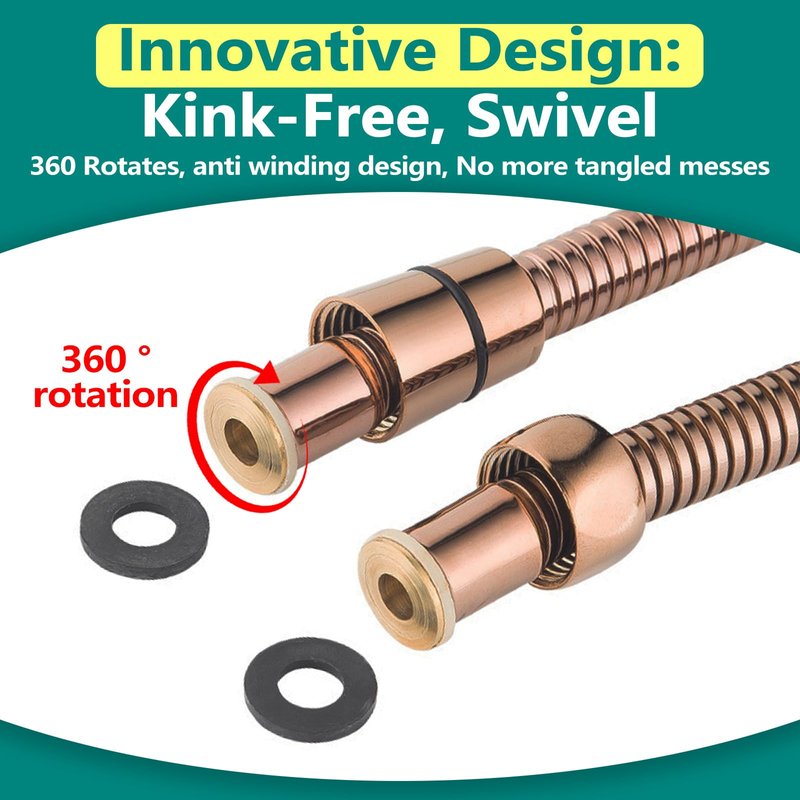 - 360 Degree Rotatable Design: This shower head hose is designed with a swivel brass nut, keeping your shower head hose kink-free, you will no more be annoyed by your old twisting shower hose, and comes with two shower caps