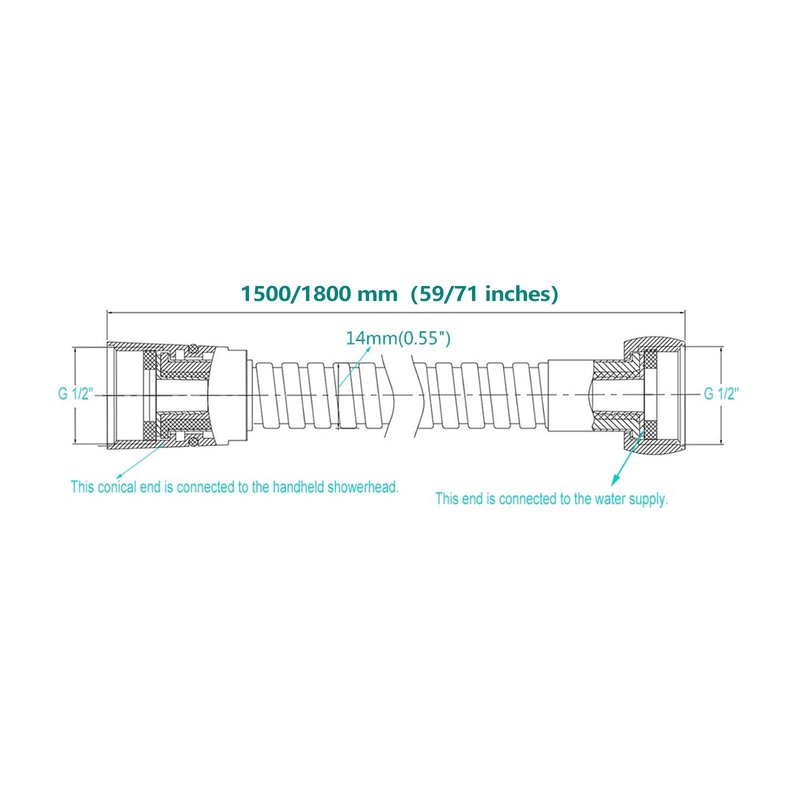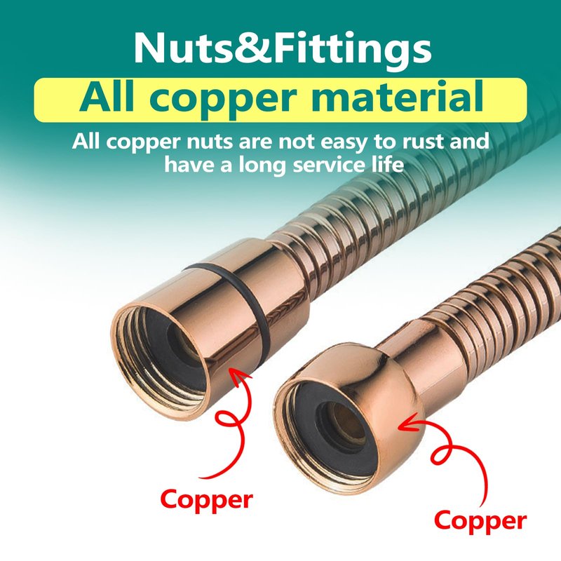 - High Water Pressure Resistance:Our shower hoses internal pipes are all made from premium material EPDM, which is non-toxic & odorless, heat-resistant and cold resistant, high water pressure resistance