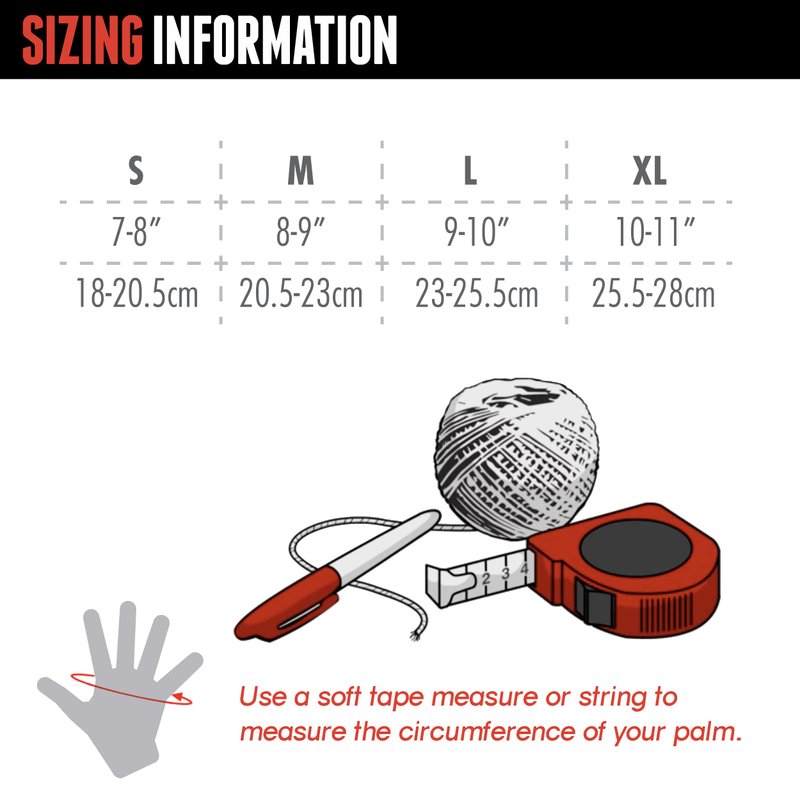 - To determine proper size, measure hand circumference at the knuckles; manufacturer’s 180-day limited warranty