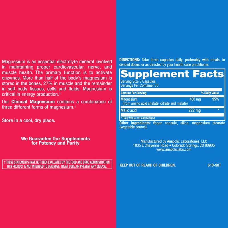 - Anabolic Labaratories tri magnesium supplement is made with three sources of magnesium for maximum potency: citrate, malate, and chelate.