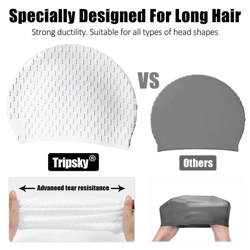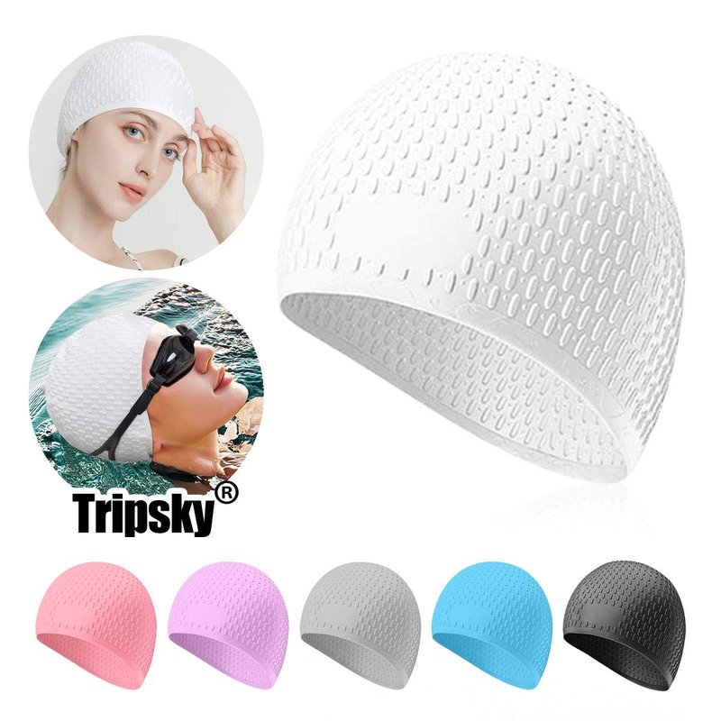 Tripsky Silicone Swim Cap,Comfortable Bathing Cap Ideal for Curly Short Medium Long Hair, Swimming Cap for Women and Men, Shower Caps Keep Hairstyle Unchanged (White)