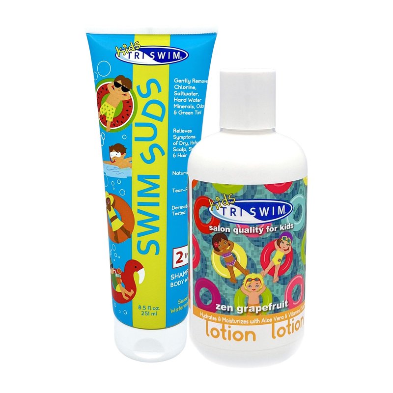 - Complete Swim Care Set: Includes TRISWIM Kids Swim Suds 2-in-1 tear-free shampoo/Kids Swim Body Wash and kids after swim lotion for comprehensive swim care.