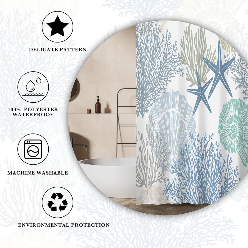 - 🛀Unique Design: Designed with sea creatures, advanced pattern printing technology, marine plants and animals print shower curtain, image clearly, make your bathroom more fresh and have a new look.