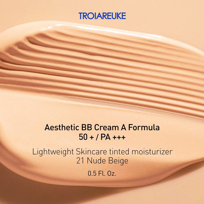 TROIAREUKE Aesthetic BB Cream A+ Formula (21 Beige) SPF50+ PA+++, Lightweight Blemish Balm, Tinted Moisturizer with Medium Coverage, Lasting Foundation Makeup Base for Oily Skin | Korean Beauty Makeup