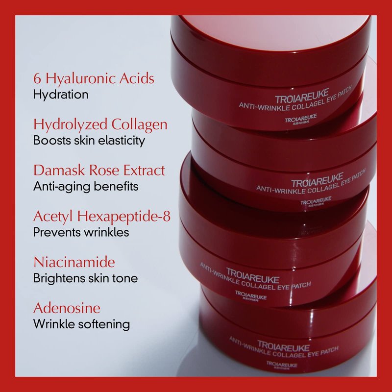 TROIAREUKE Anti-Wrinkle Collagel Eye Patch,Smooths eye,forehead,facial wrinkles,Reduces puffiness & Dark circles,Hydrogel Wrinkle patches,Elastic,adhesive formulation (60Count)