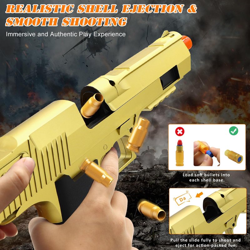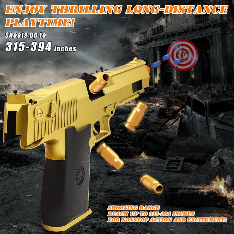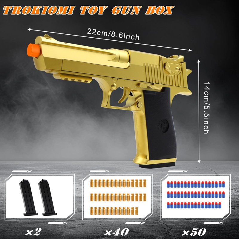 Trokiomi Soft Bullet Gold Toy Gun - Blaster with Shell Ejecting - Toy Pistol Gift Box for Christmas Birthday Present for Boys Girls Adults Age 8+