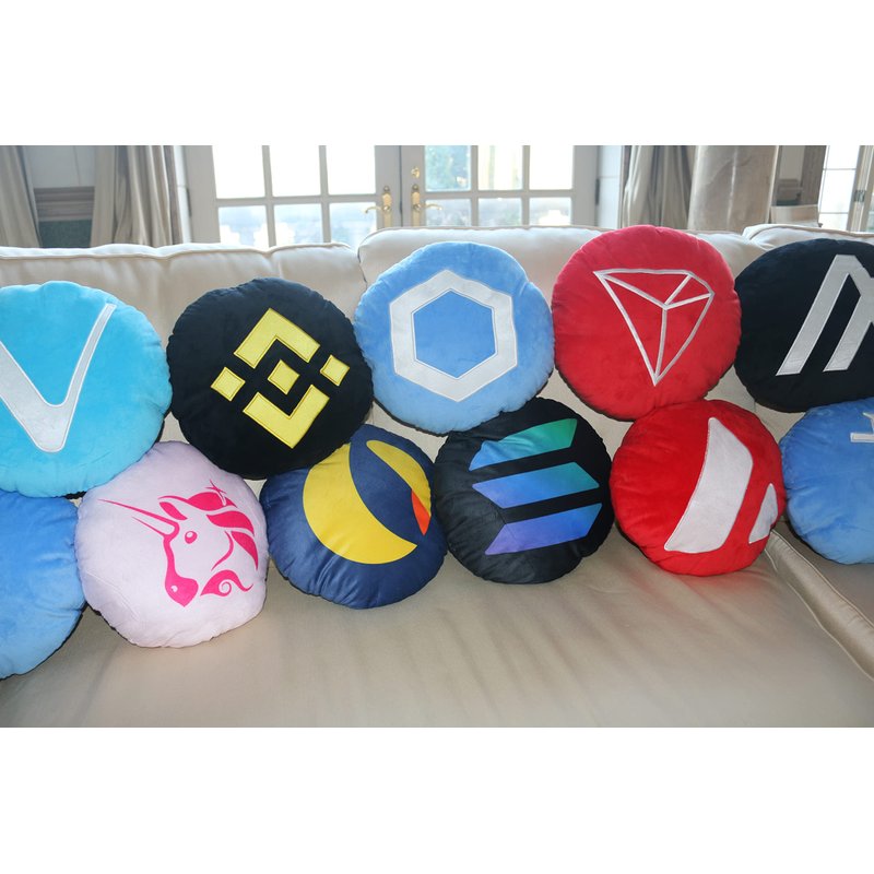 We know it's hard to get sleep in this crazy crypto market but our TRON Pillows make relaxing an ease. 12 inch / 32 cm Stuffed Plush TRON Pillow. Perfect for your bed or couch or the crypto investor in your life! Get comfort during volatile times. Created by BlockCraft.Shop. Looks great anywhere, soft with a circular coin appearance, and makes a great talking piece. Pillows are vacuum sealed for protection during shipping, please make sure to fluff the TRX pillow to maximum comfiness after it is delivered. :)