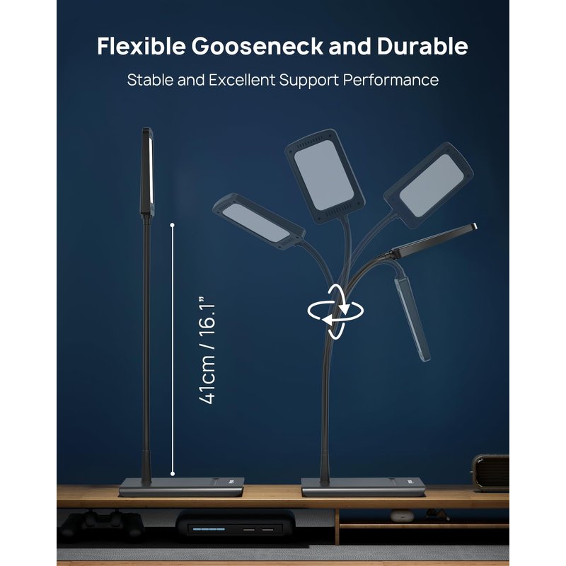 - 【Flexible Gooseneck Lamp】: This table lamp features an ultra-slim base (0.63” thick) and a low-profile design, fitting perfectly with your home or office decors. The flexible gooseneck (16.1”, fully extended) allows you to bend the lamp towards wherever you want.