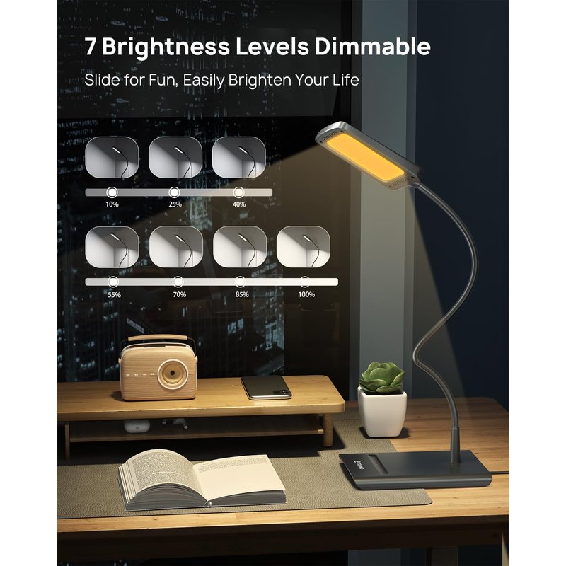 - 【7 Brightness Levels Table Lamp】: By swiping at the dimmer groove, you can adjust the brightness up to 7 levels, fun & easy to use. This adjustable dimmer led desk lamp is perfect for home, office, bedroom, nightstand, or kitchen. Even smarter, the integrated memory function can remember the light setting from your last use.