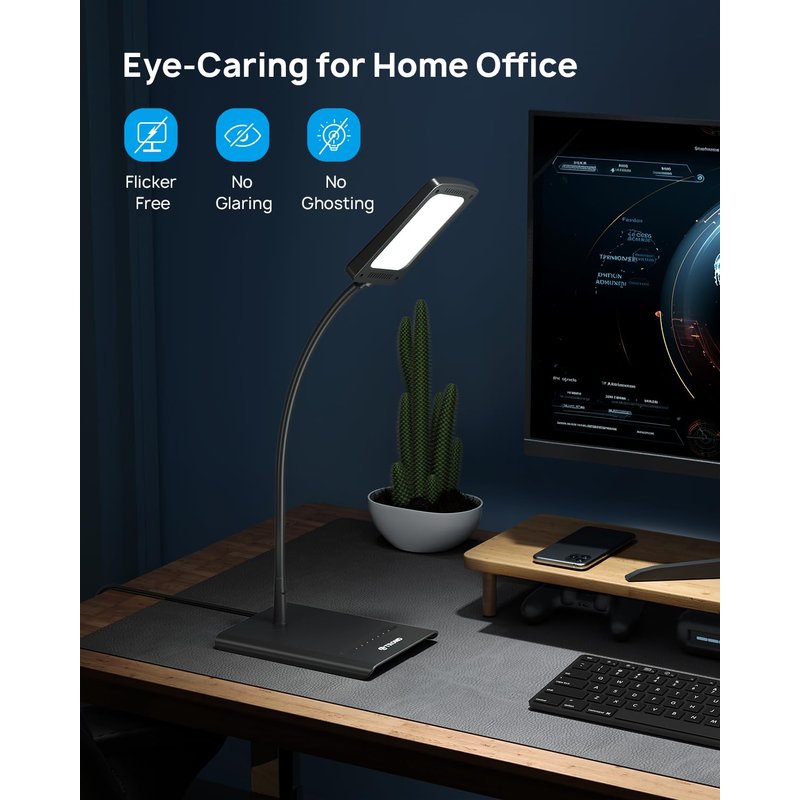 - 【Eye-care LED Desk Lamp】: A unique surface lighting source & innovative light guide panel create a flicker-free, anti-glare light without ghosting, ideal for children, students, or people with vision problems such as macular degeneration. No more eye fatigue. This soft, non-glare desk light is perfect for when you're working, reading, or crafting.