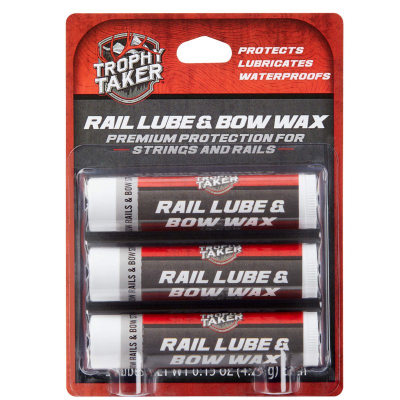 - TROPHY TAKER’S RAIL LUBE + BOW WAX: Keep your bow finely tuned and maintained will keep your crossbow, compound or traditional bow ready for the field providing a microfilm protection that prevents fraying of bowstrings and cables.