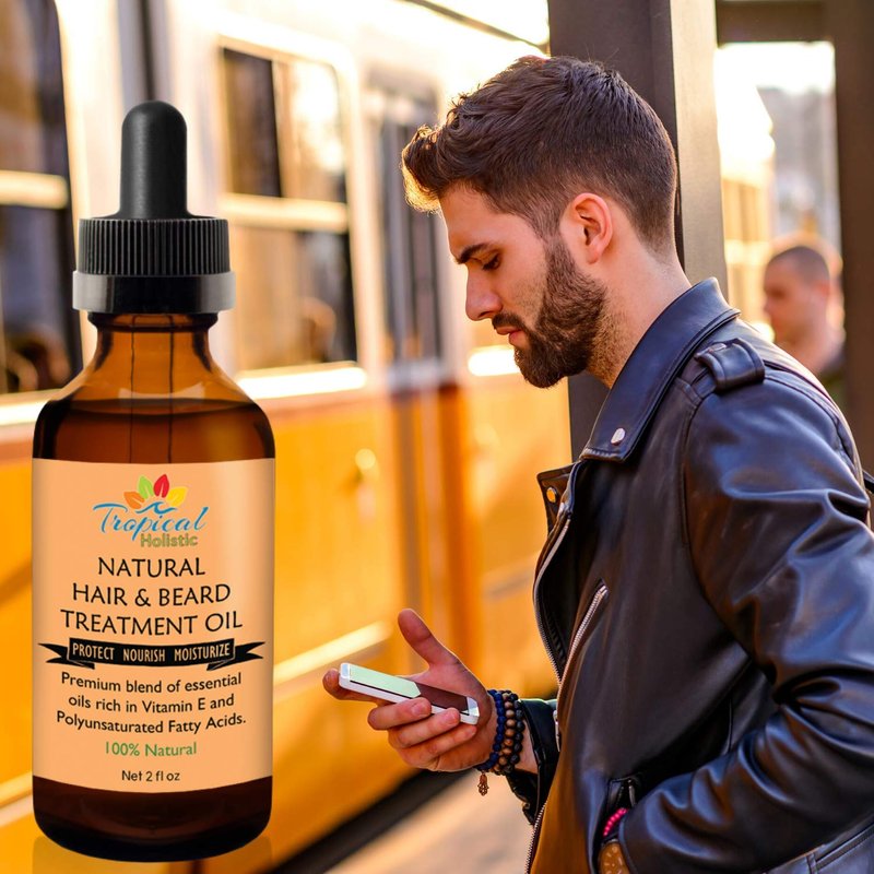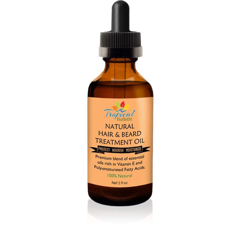 Tropical Holistic 100% Natural Hair Treatment Oil 2 oz - Premium Beard Essential Oil Blend with Argan, Emu, Jojoba, Jamaican Black Castor Oil, Peppermint for Men, Women with Dry, Damaged, Thin Hair