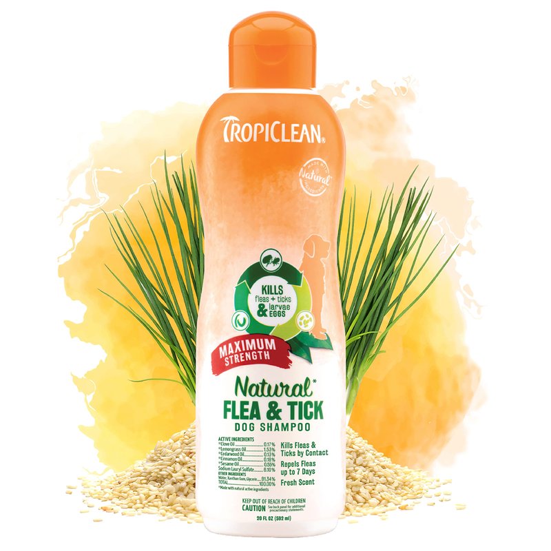 TropiClean Maximum Strength Natural Flea and Tick Dog Shampoo for Flea and Tick Prevention for Dogs | Made in the USA | 20 oz
