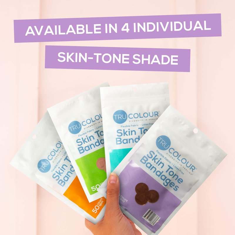 Tru-Colour Bandages are latex-free, skin-tone shade bandages. We believe in the beauty of individuality and as the leader in multi-cultural bandages, Tru-Colour offers a variety of 4 skin-tone shades so you can select a shade that is right for you.