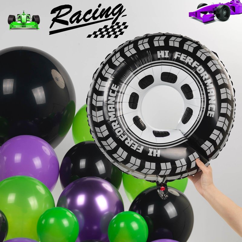 - 【Truck theme Decorations】INCLUDES 116 PCS 5/10/12/18inch balloons in various sizes, we chose Metal Purple/lime green/black as Palette for the theme, Add Wheels checkered star foil balloons, with Tools Glue Dot Kit lets you create a cheerful and vibrant racing car themed party.