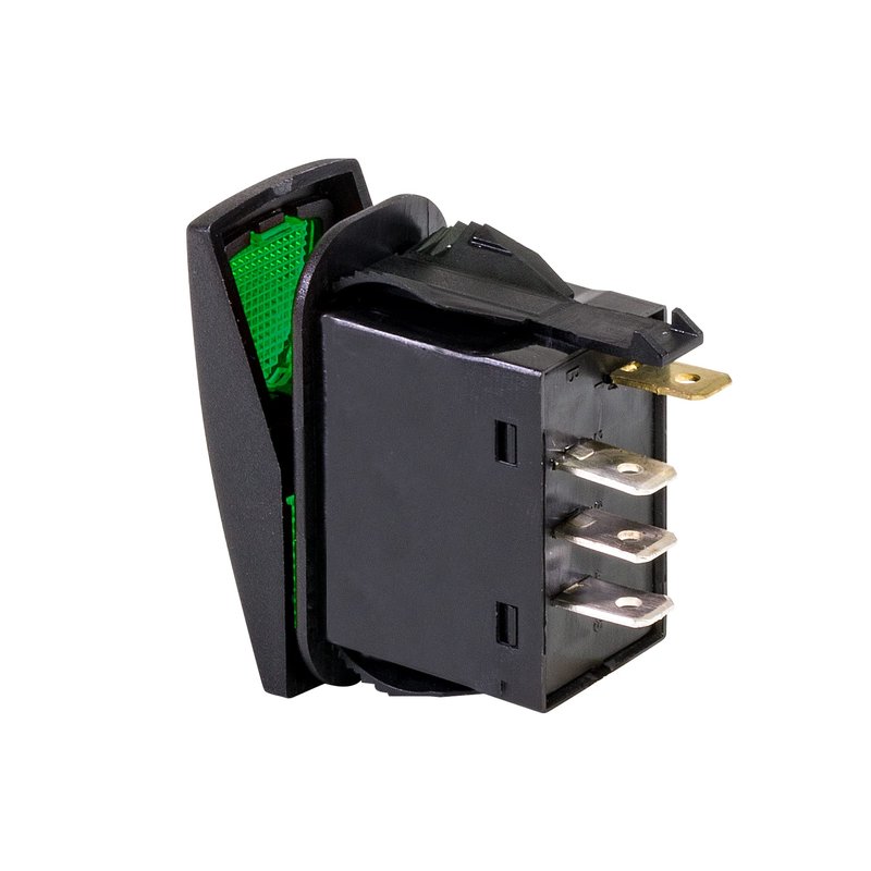 The OLS PSZACCEPS009S 4-pin SPDT LED illuminated rocker switch has an IP56 rating which makes this heavy duty rocker switch dustproof and protected against strong water jets. This three position ON OFF ON switch allows one to control multiple apparatuses independently from each other through a single rocker switch. Capable of handling 21 Amps of load from a 14 volts DC source, this on off on SPDT rocker switch has a switch body sized at 1-7/16" by 13/16", making it compatible with factory switch slots of most modern vehicles.