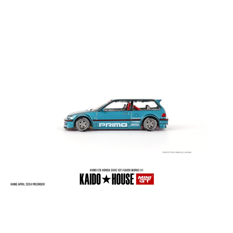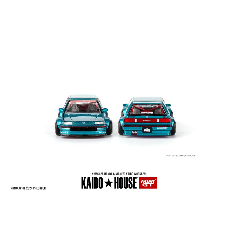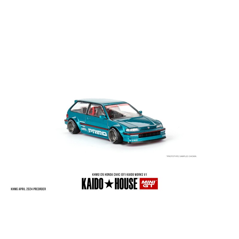 True Scale Miniatures Model Car Compatible with Honda Civic (EF) Kaido Works V1 Tahitian Green Limited Edition 1/64 Diecast Model Car Kaido House KHMG126