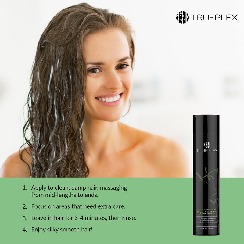 Trueplex KERATHERAPY Bamboo Miracle Smooth & Repair Conditioner, 10.1 oz., 300 ml - Vegan Formula Damaged, Frizzy, & Dry Hair - Hydrating & Smoothing with Grape Seed, Baobab, & Bamboo Extract