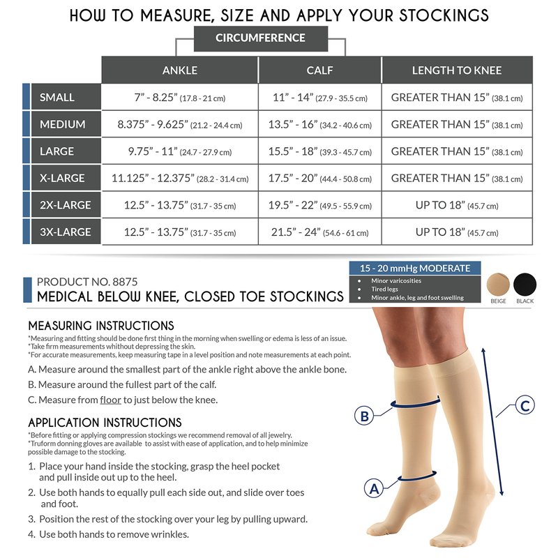 - Truform 8875; Medical support hose; Unisex style durable knit; 15-20 strength graduated compression