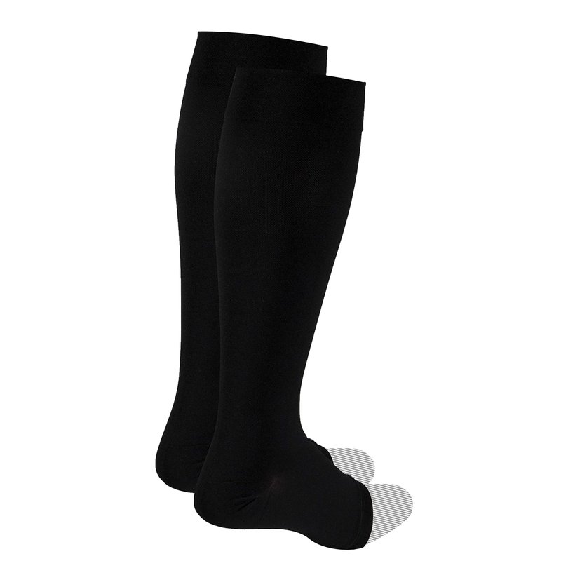 Truform 15-20 mmHg Compression Stockings for Men and Women, Knee High Length, Open Toe, Black, Small