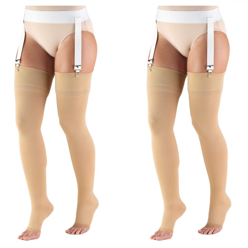 Truform 30-40 mmHg Compression Stockings for Men and Women, Thigh High Length, Open Toe, Medium, 2 Count