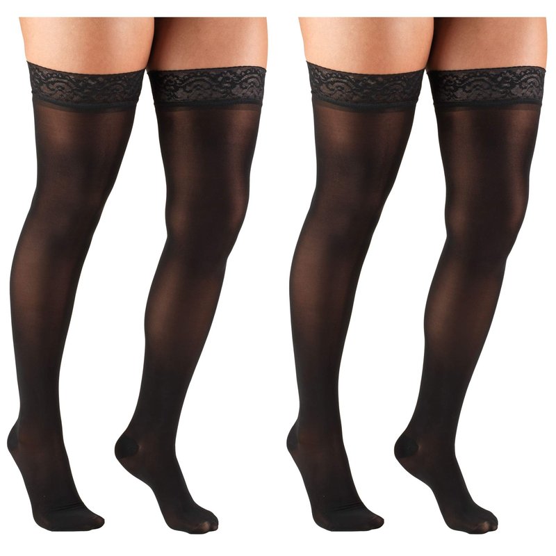 Truform Compression 20-30 Mmhg Sheer Thigh High Stockings Black, Medium, 2 Count