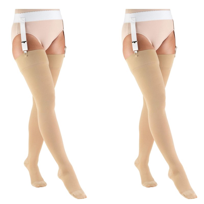 Truform Compression 30-40 Mmhg Thigh High Stockings Beige, Small, 2 Count