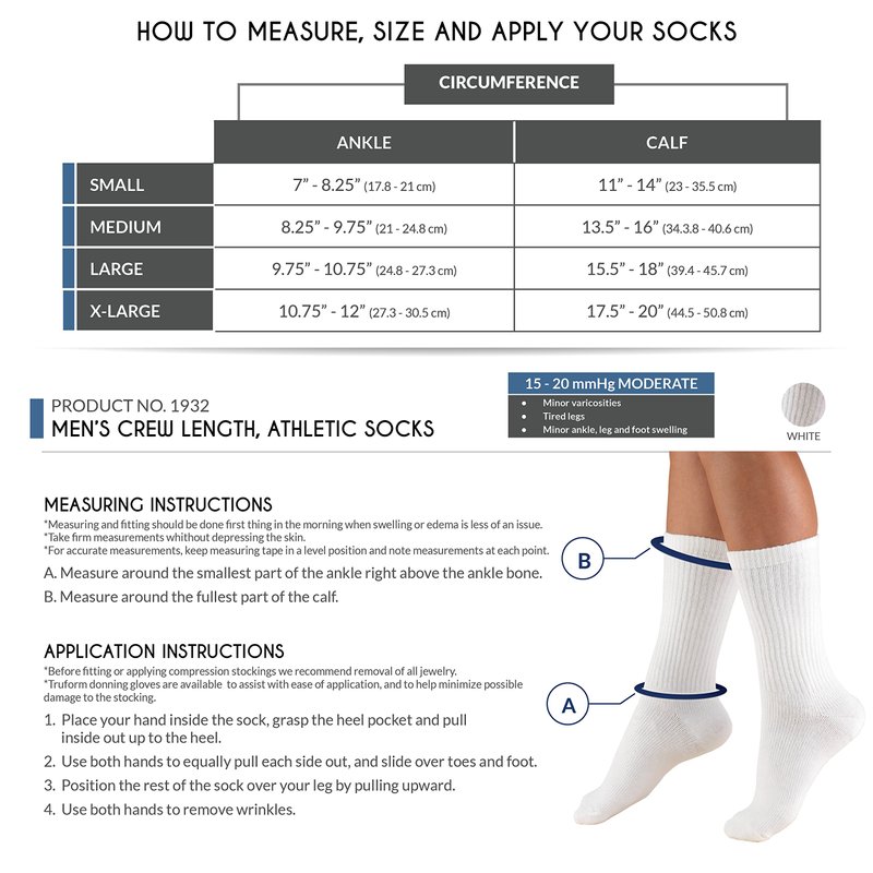 - Truform 1932; Men's short crew style sport socks; 15-20 moderate strength graduated compression