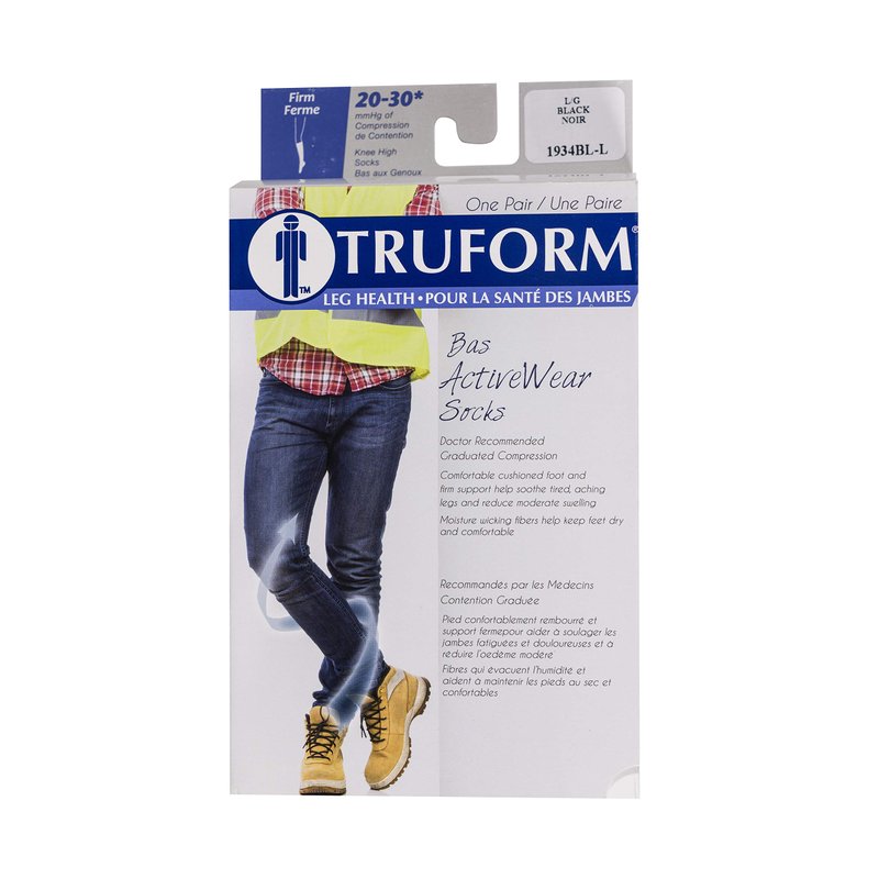 - Truform 1934; Men's active casual style support socks; 20-30 firm strength graduated compression