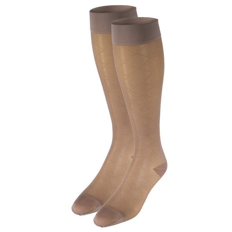 Truform Sheer Compression Stockings, 15-20 mmHg, Women's Knee High Length, Diamond Pattern, Nude, Medium