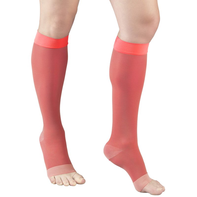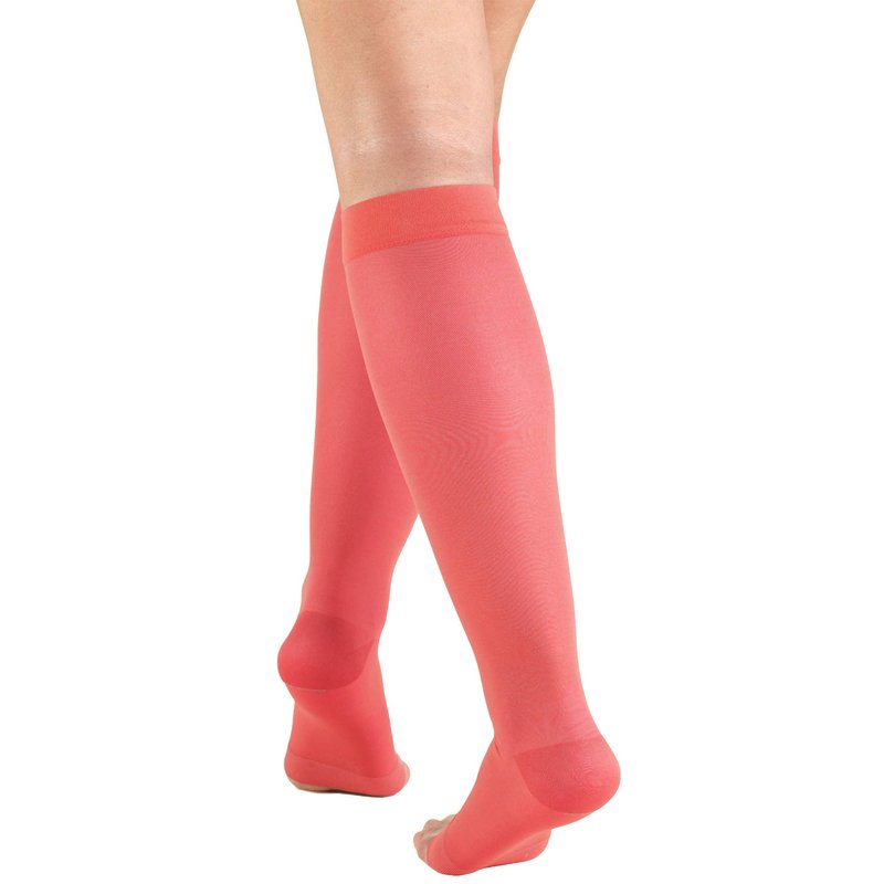 Truform Sheer Compression Stockings, 15-20 mmHg, Women's Knee High Length, Open Toe, 20 Denier, Pink, Small