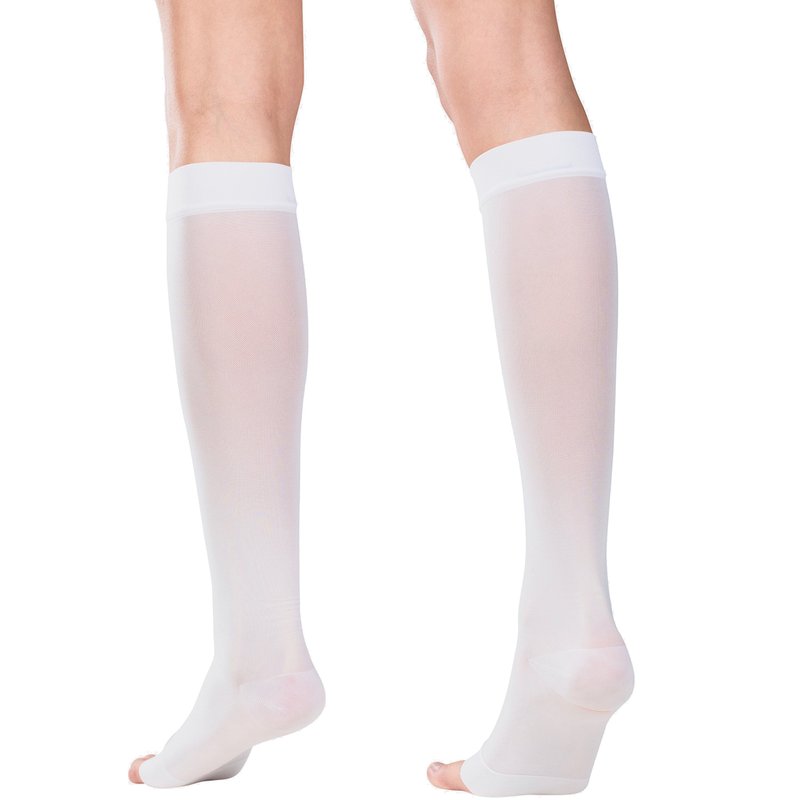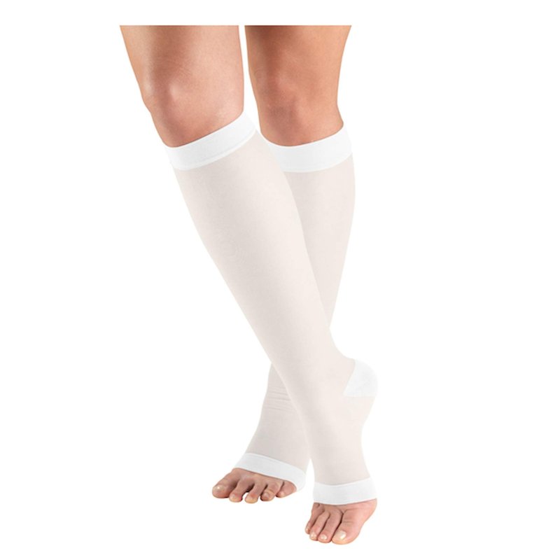 Truform Sheer Compression Stockings, 15-20 mmHg, Women's Knee High Length, Open Toe, 20 Denier, White, Small