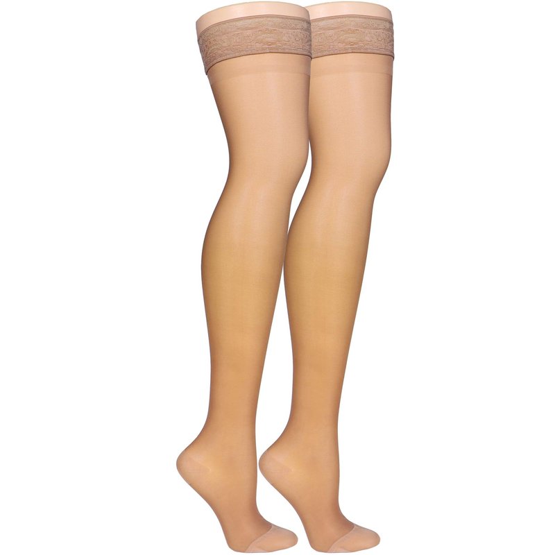 Truform Sheer Compression Stockings, 15-20 mmHg, Women's Thigh High Length, 20 Denier, Beige, Medium