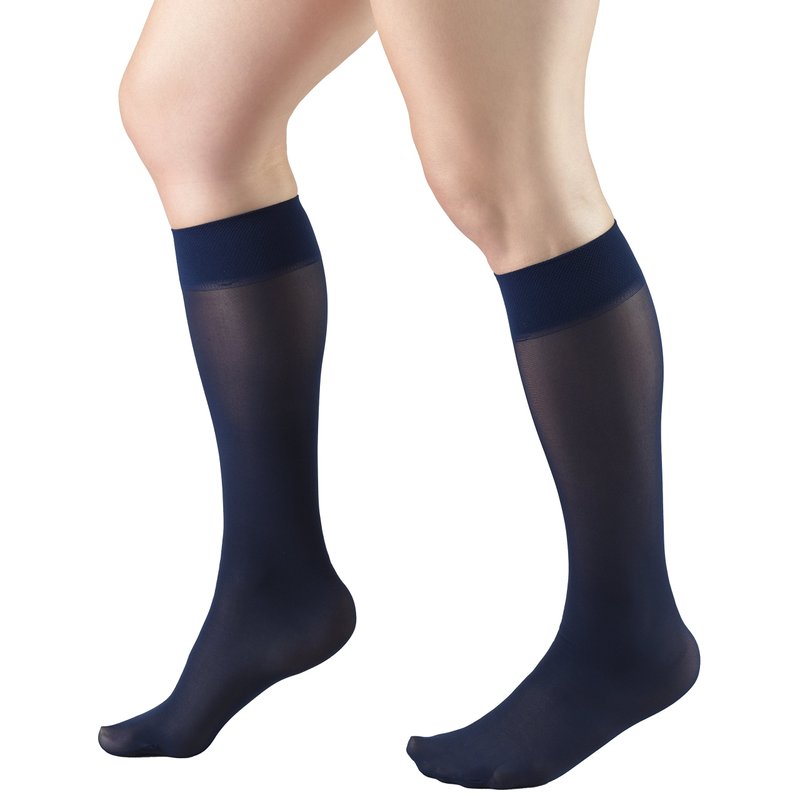 Truform Sheer Compression Stockings, 8-15 mmHg, Women's Knee High Length, 20 Denier, Navy, Small