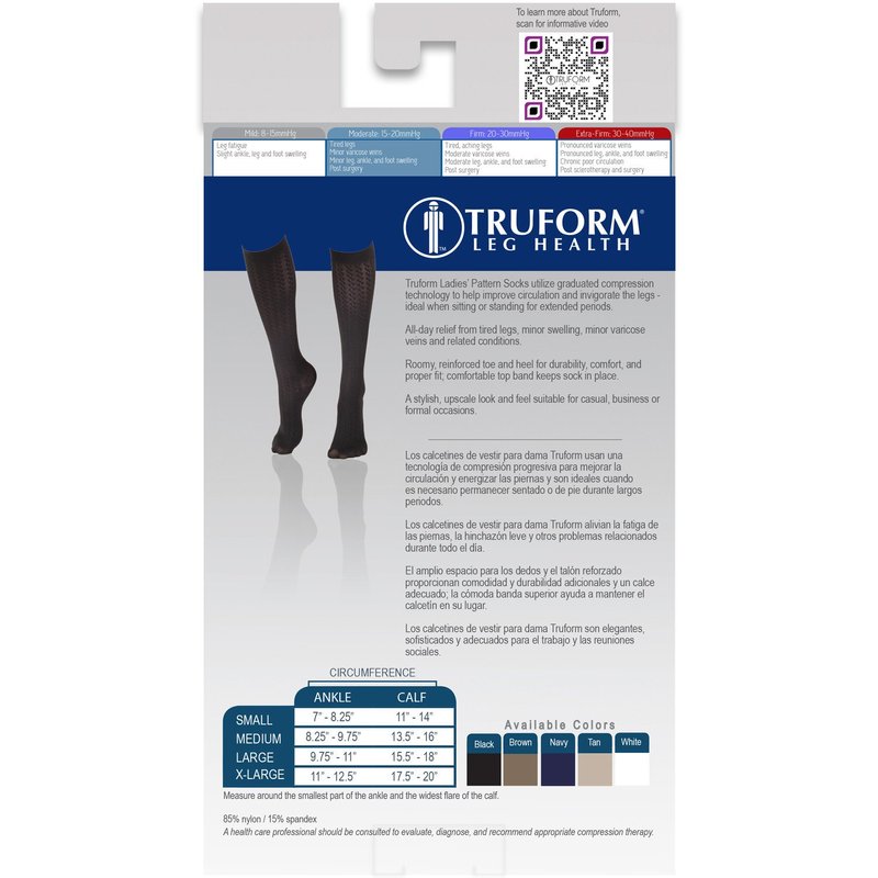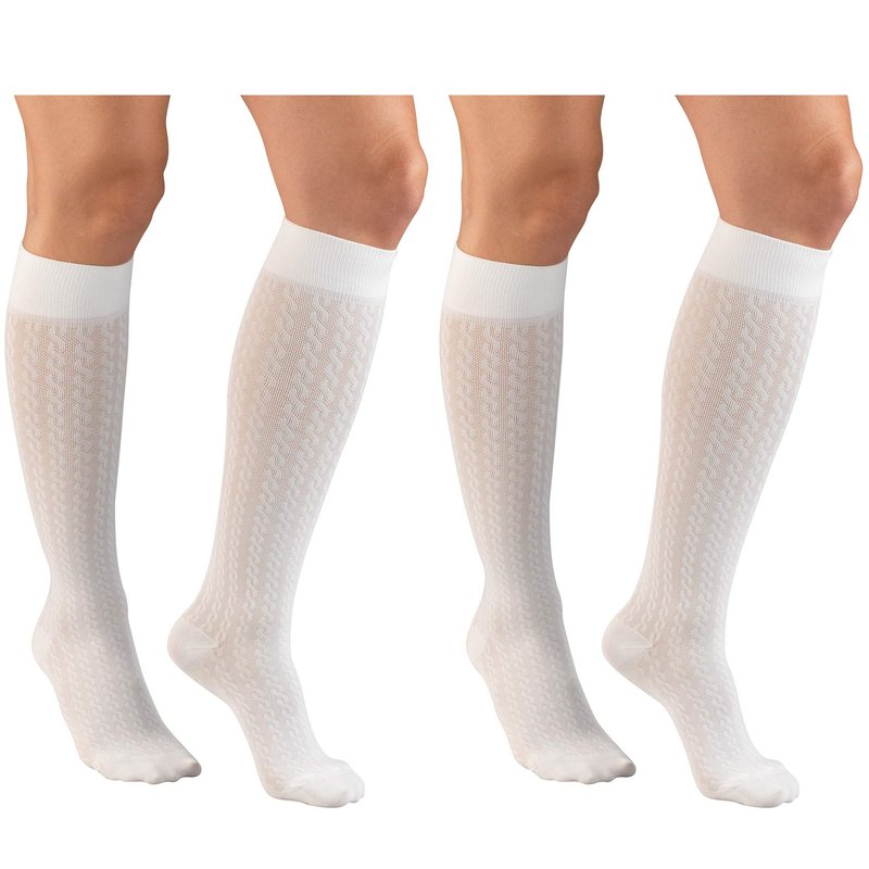 Truform Women's 15-20 mmHg Compression Dress Socks with Cable Pattern, White, Medium (Pack of 2)