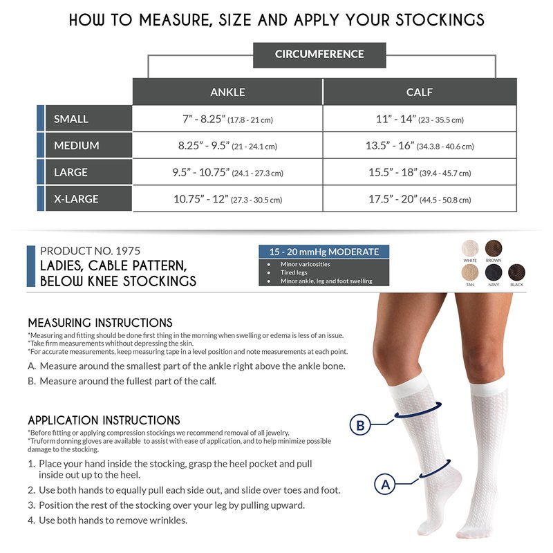 - Moderate support to help relieve tired legs, minor ankle, leg, and foot swelling, and minor varicose veins