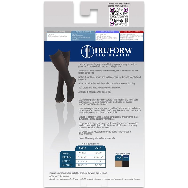 - Truform 0371; Ladies microfiber support hose; Dress nylons; 15-20 strength graduated compression