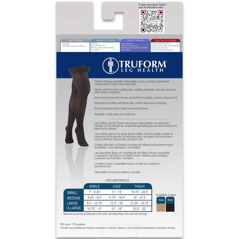 Truform Women's Compression Stockings, 20-30 mmHg, Thigh High Length, Open Toe, Opaque, Beige, Medium