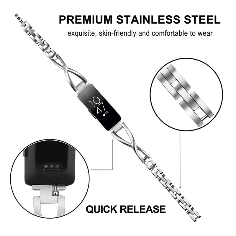 - FIRMLY SECURE & QUICK RELEASE: The replacement band comes with customed stainless steel adapters on both ends, which lock into your Inspire watch face precisely and securely. Never worry about loosening or falling off your precious Inspire. Moreover, its quick release style makes it convenient to install and detach, no tool needed, just plug and play.