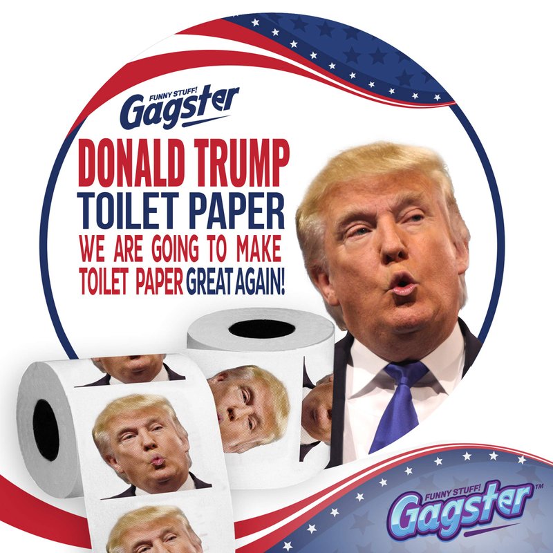 Trump Political Toilet Paper Roll by Gagster - 3 Ply Funny Novelty Gag TP with Full-Color Image - 200 Sheets Per Roll - Prank Gift for Adults - Printed on Every Sheet - Make Your Butt Laugh