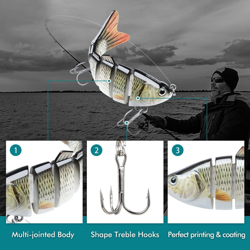 - 6 SEGMENTS LIFELIKE LURES: Designed with 6 segments multi-jointed body, TRUSCEND fishing lures can sink slowly and move flexible in water. In addition, life-like swimming actions make it attracting more catches and provoking predator fish to strike.
