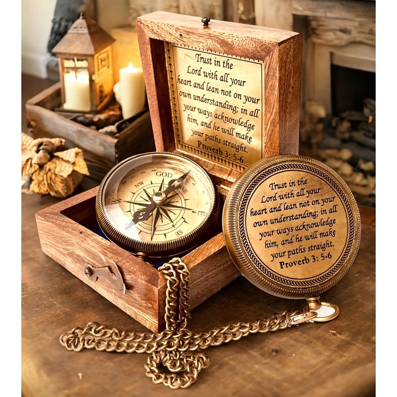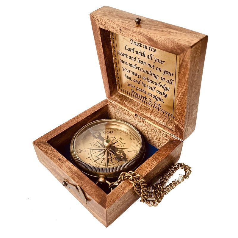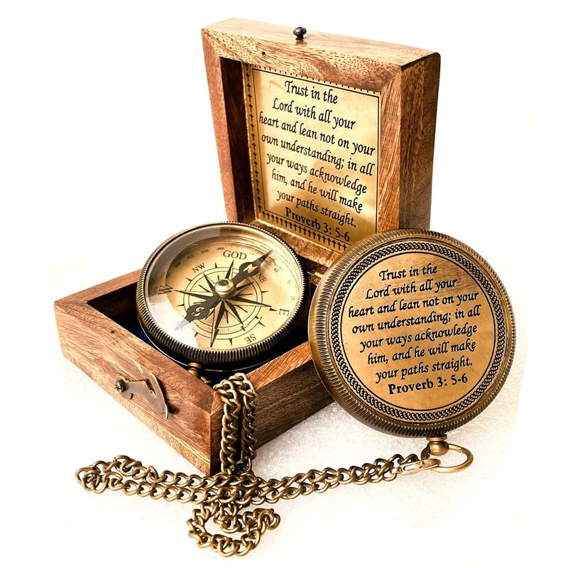 - Religious Gifts for Men Catholic Christian Boys, Women & Girls :- Trust in The Lord with All Your Heart -Proverbs 3:5 Quote Engraved on a Handmade Compass in a seasoned solid mango wood box makes a perfect Catholic Christian religious gifts for him & her..