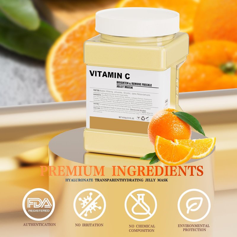 - 【VITAMIN C JELLY MASK POWDER】 - Vitamin C Jelly Face Mask are made mainly with refined alginate. provide long-lasting benefits to the skin. without any harmful to the skin,So Jelly mask texture is like jelly, which provides full hydration and a natural cooling effect all at once.