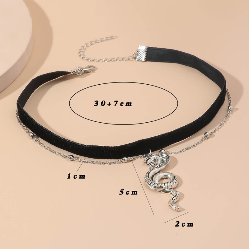 - Gothic snake pendant velvet choker.Item Details:Handmade Item.Size:As Shown.Color:Black.Materials:Quality Alloy and Velvet.Location:Earlobe.Style:Boho/Vintage.There will be slight errors due to manual measurement.Due to the shooting environment,there will be slight color difference.