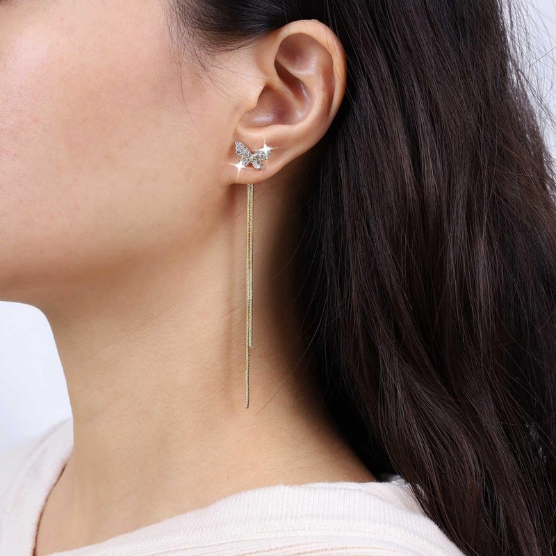 TseanYi CZ Butterfly Chain Earrings Gold Crystal Butterfly Earrings Long Chain Tassel Earrings Small Butterfly Dangle Rhinestone Earrings Sparkly Crystal Earrings